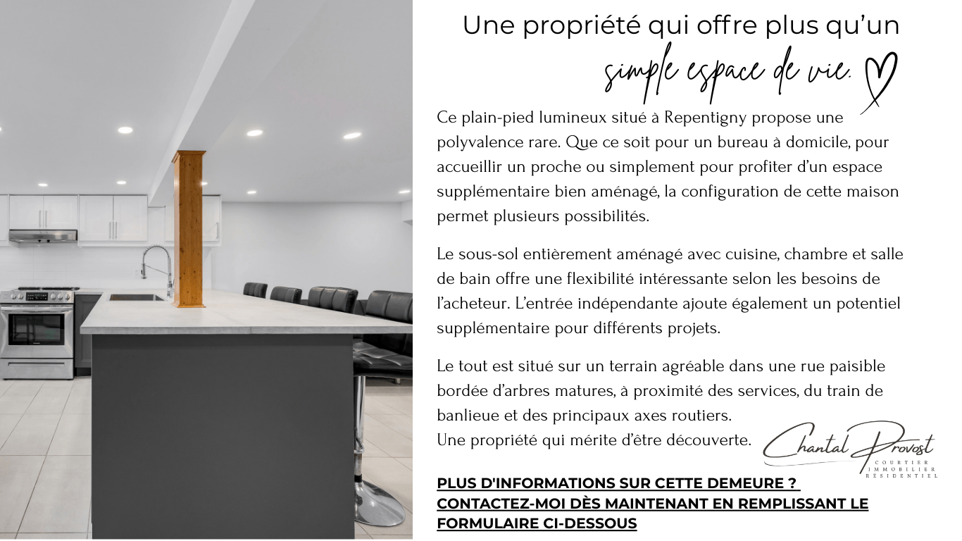 📞 Ou contactez-moi dès maintenant pour organiser une visite et laissez-vous séduire par cette charmante maison à Repentigny.