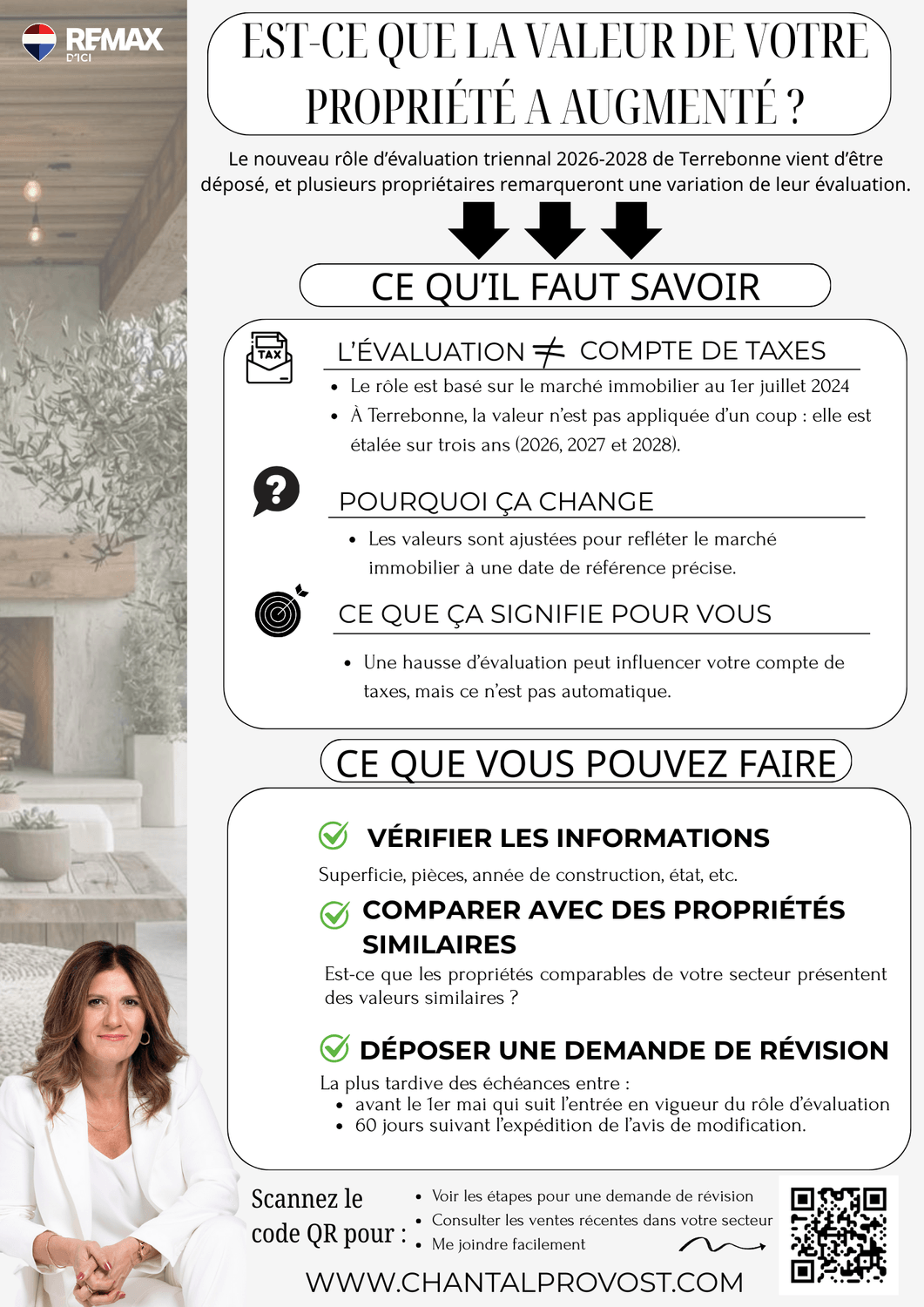 Le rôle d’évaluation 2026-2028 vient d’être déposé à Terrebonne, et plusieurs propriétaires du secteur m’ont déjà écrit pour me demander :